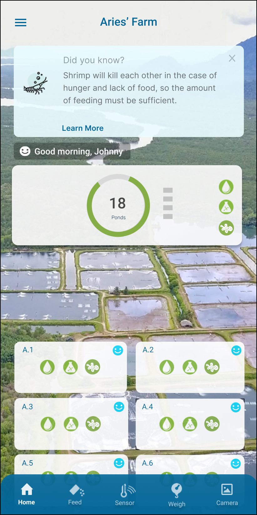 AquaEasy is an intelligent aquaculture solution that combines sensors, software, and AI analytics to help shrimp farmers improve predictability, productivity, and sustainability in inland shrimp farming. The platform relies on user-generated farm data (e.g., feeding records, lab results, shrimp measurements) to produce actionable recommendations.
